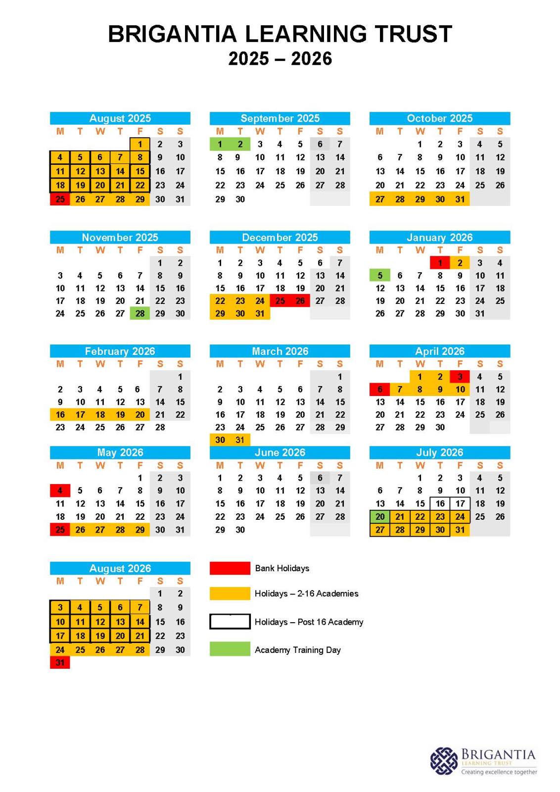 Trust calendar 2025 to 2026