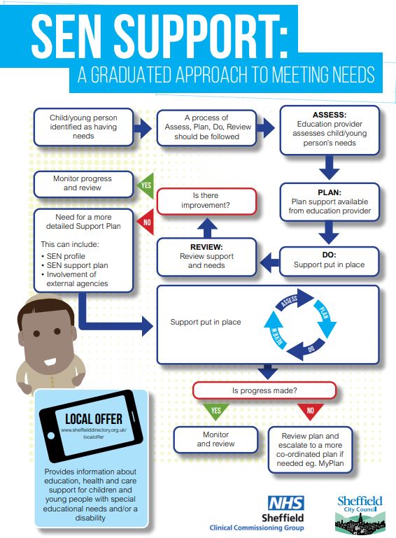 We use the Sheffield Support Grid to plan provision for each pupil with SEND. The grid uses the official categories of need set out by the Special Educational Needs & Disability (SEND) Code of Practice: 0-25 years (2014) and illustrates the Teaching and Learning Strategies suitable for each.